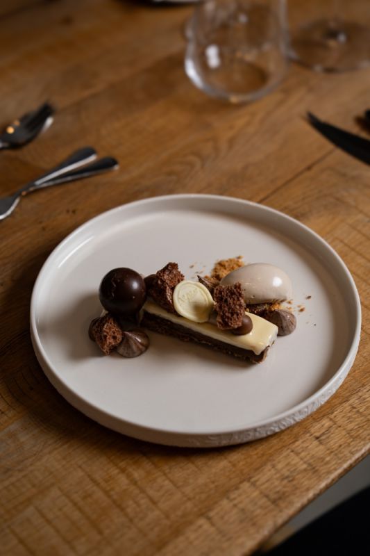 Romantický večer by nebyl kompletní bez dokonalého dezertu. Závěr patří sametové ganáži z čokolády Michel Cluizel, doplněné o Baileys, kávu a karamel. Kombinace, která se doslova rozplývá na jazyku a uzavírá celý večer v duchu smyslnosti a elegance.